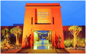 bei Intu Africa, nehmen Sie am späten Nachmittag an einer Fahrt durch die roten Dünen der Kalahari teil und werden mit der